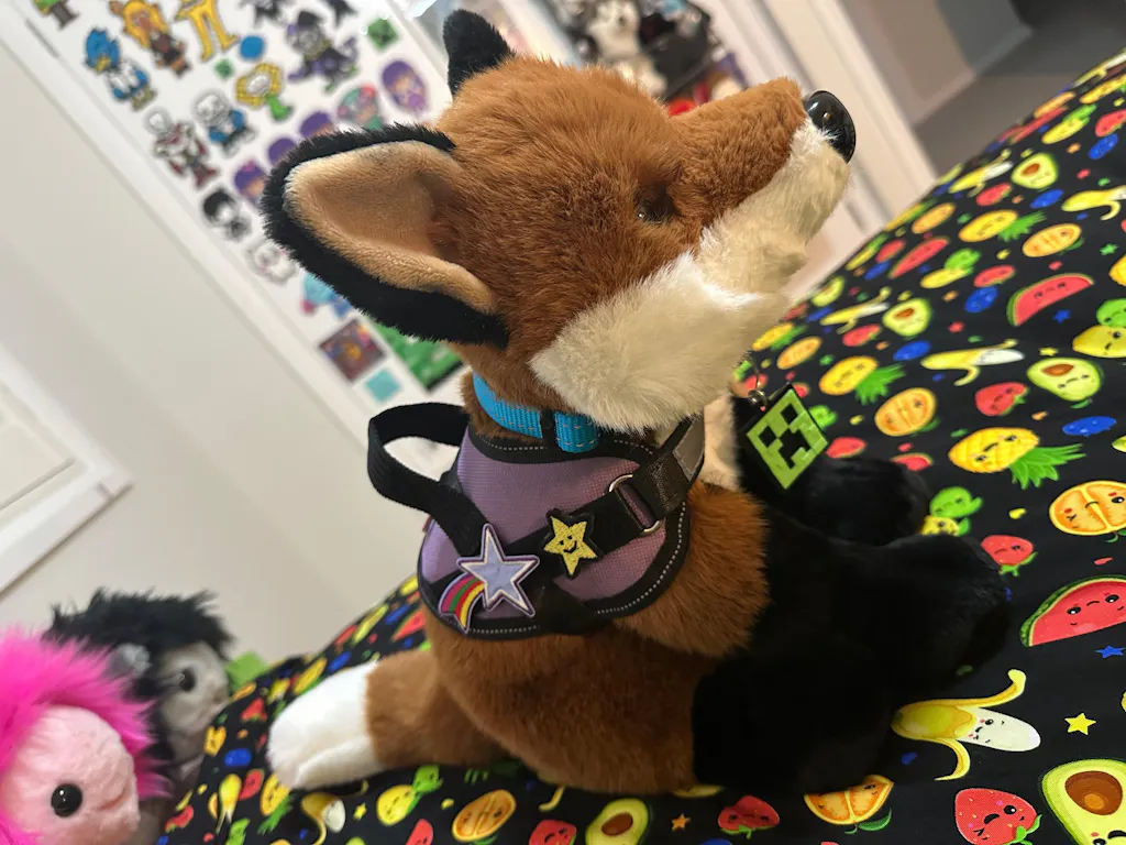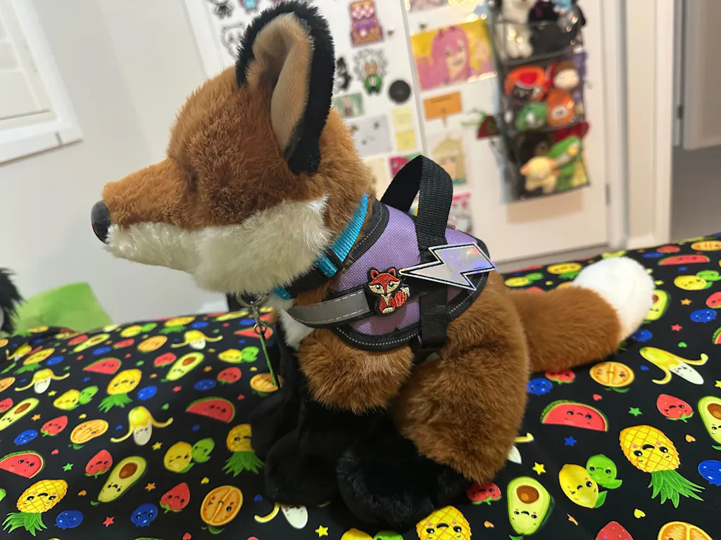 Such a cute and soft fox, prompt delivery time too! I got an XS harness and made the belly strap shorter and it works great. Thank you!!