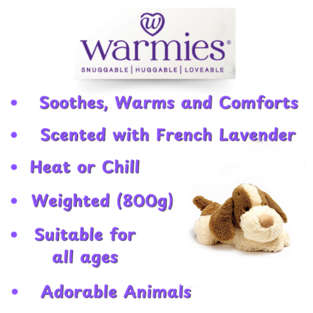 Warmies® plush animals are fully microwavable to provide hours of soothing warmth and comfort and fully freezable to provide cooling relief on warm nights. These luxuriously soft plush designs are gently scented with French-dried lavender and can be reheated repeatedly. Warmies are weighted, warming, scented and super cuddly, making them an ideal gift for all ages!