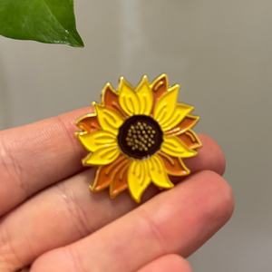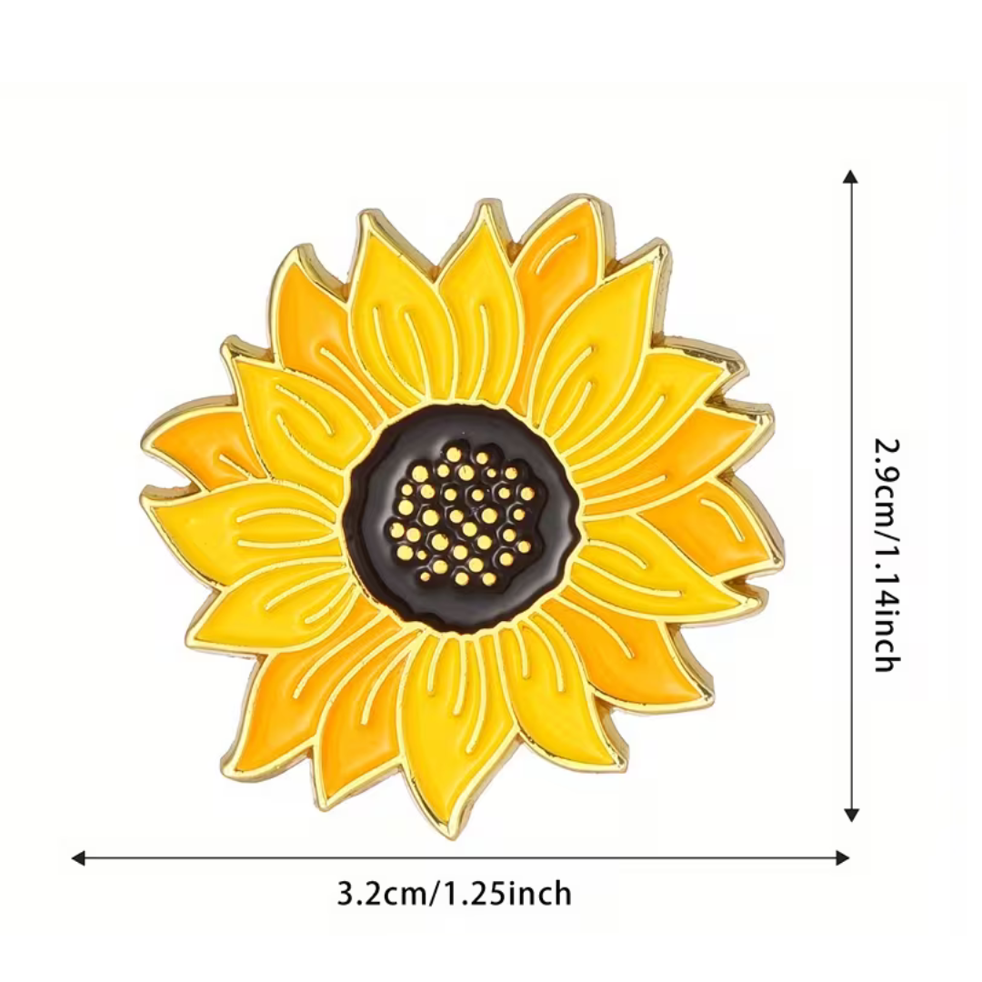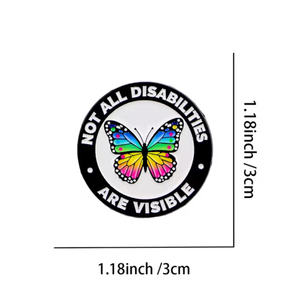 Pin with sunflower design and 'Not all disabilities are visible' text, with measurements and weight information.