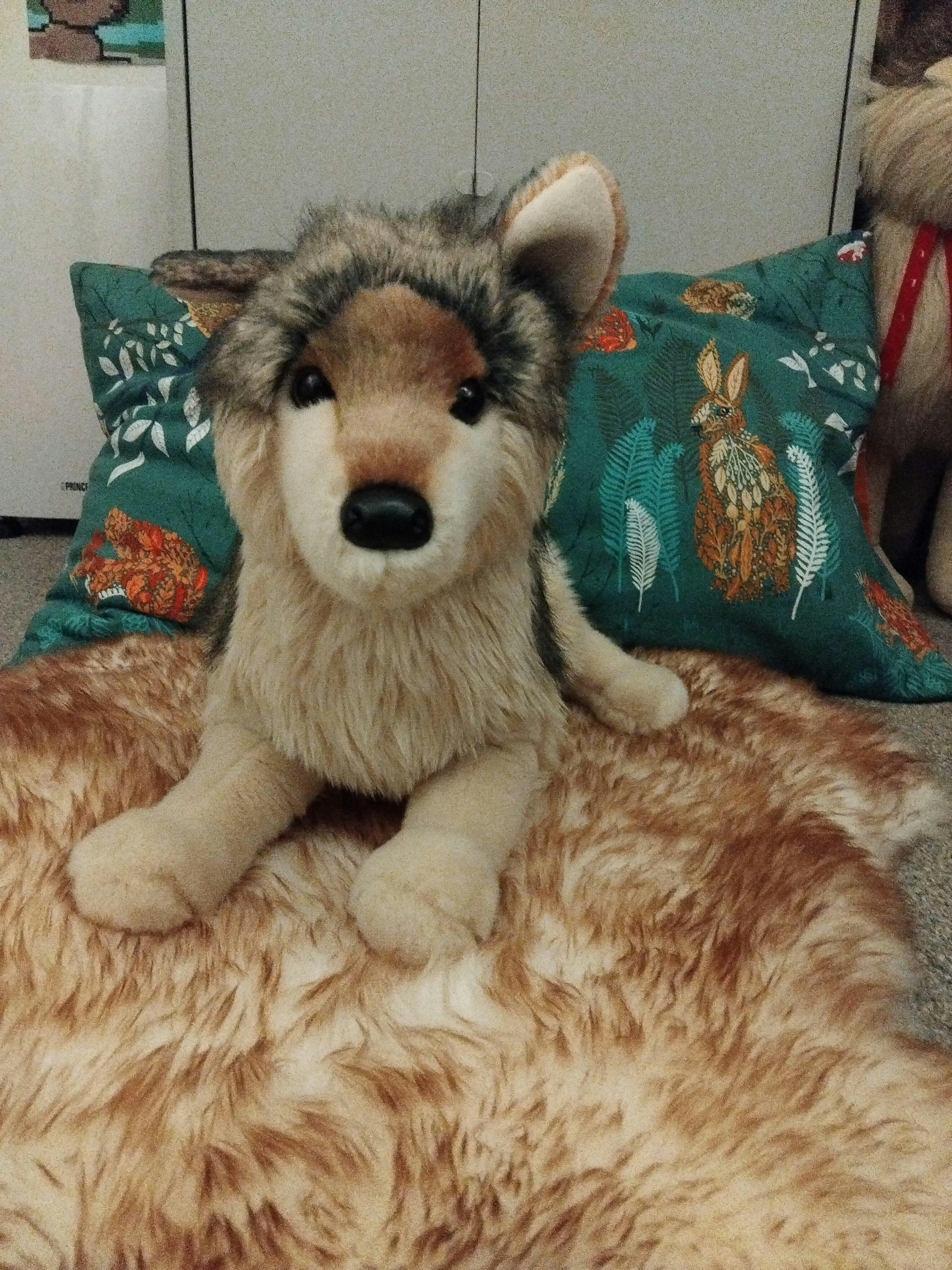 With a realistic appearance and luxurious faux fur materials, Smoke the plush Wolf will captivate nature lovers of all ages! Plush fabrics depicting a mixture of different colours and shades come together to lend her an especially lifelike look. Smoke’s design features a floppy body that allows for easy posing and an irresistible cuddliness that will snuggle perfectly into your arms. Smoke’s eyes glow amber in the light, and she features a soft, leatherette nose for additional realism. Meticulous airbrushing across her face highlights the distinction and grace of this beloved wild animal. Capture Smoke, the noble Wolf stuffed animal, for yourself or surprise someone special with this cuddly wildlife treasure!