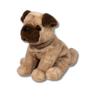 Milo, our Pug stuffed animal might not be the world’s best problem solver but he makes up for it in irresistible charm! His quizzical expression is enhanced with soulful brown eyes that will capture your imagination and run off with your heart. His chocolatey brown face mask and small, floppy ears accurately depict the look of the endearing Pug breed. We’ve detailed his burly chest with folds and wrinkles of plush so soft it must be cuddled to be believed. Milo’s floppy design is weighted with beans and can be posed flopped down or sitting up for hours of playtime fun. From his soft, leatherette nose to his cute curled tail, there’s just so much of Milo the plush Pug dog to love!