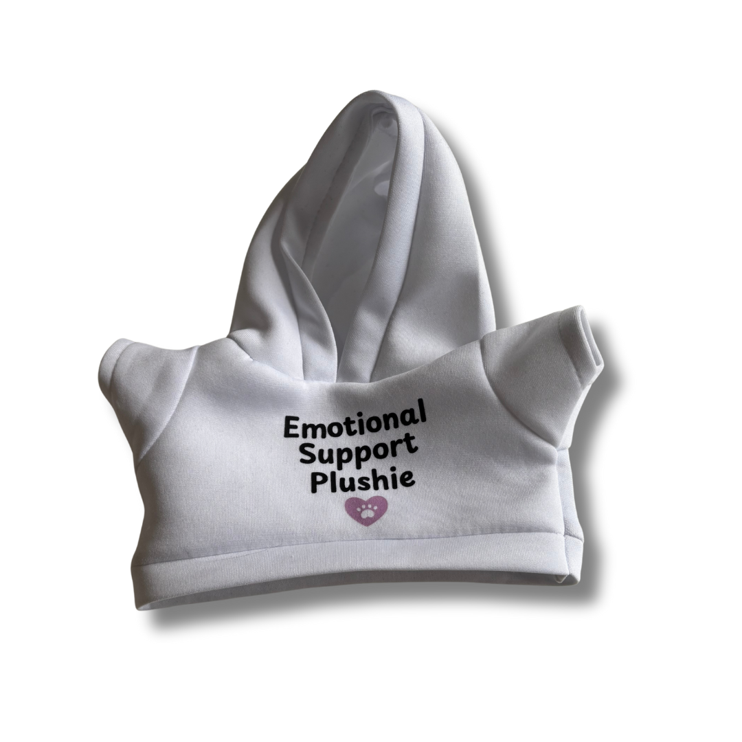 Emotional Support Plushie hoodies. These are perfect for plushies like the Charlie Bear range or even Jellycats!